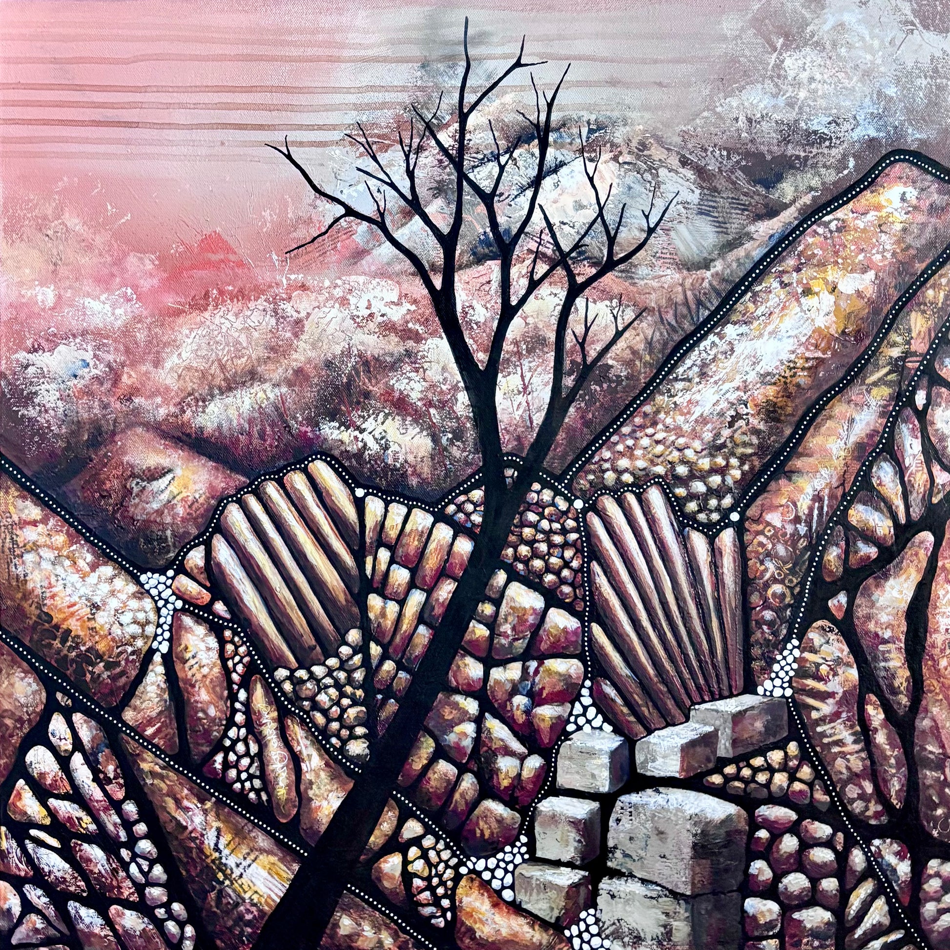 Echoes of Encouragement explores the power of positive words on our emotional geography. As sound echoes through the mountains, words of kindness, affirmation, support and encouragement resonate like tectonic shifts, —shaping our terrain. The bare tree evokes fragility and exposure, yet also resilience and growth. Like the tree, we can stand as resilient sentinels, capable of growing anew with each season.
