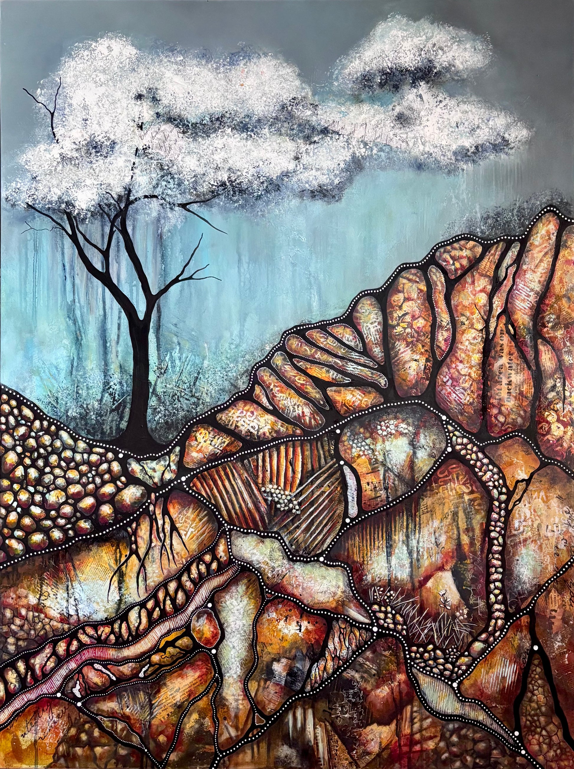 The imaginary strata stand as symbols of visible and lasting impact. Like layers of sediment, words leave a residue on our inner terrain. They accumulate beneath the surface of our lives. This piece is an invitation to consider the kind of world we create with our words. We all have the right to speak. We also have the power to choose language that uplifts, respects, and connects. Words are powerful. Wield them well.